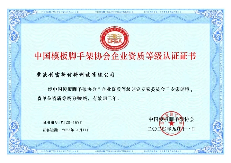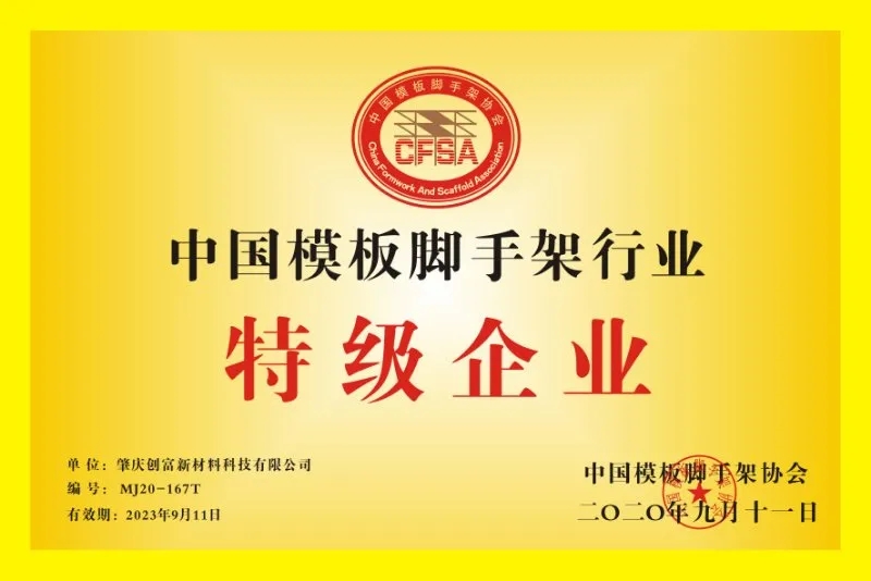 此次通過中國模板腳手架行業(yè)特級資質(zhì)企業(yè)認定,是協(xié)會對創(chuàng)富多年來專注于模板腳手架領(lǐng)域所取得成績的肯定。未來,公司將會進一步完善質(zhì)量管理體系,加大技術(shù)研發(fā)力度,研發(fā)出更多具有競爭力的優(yōu)質(zhì)產(chǎn)品應用于市場,不斷促進自身及中國模板腳手架行業(yè)發(fā)展。
